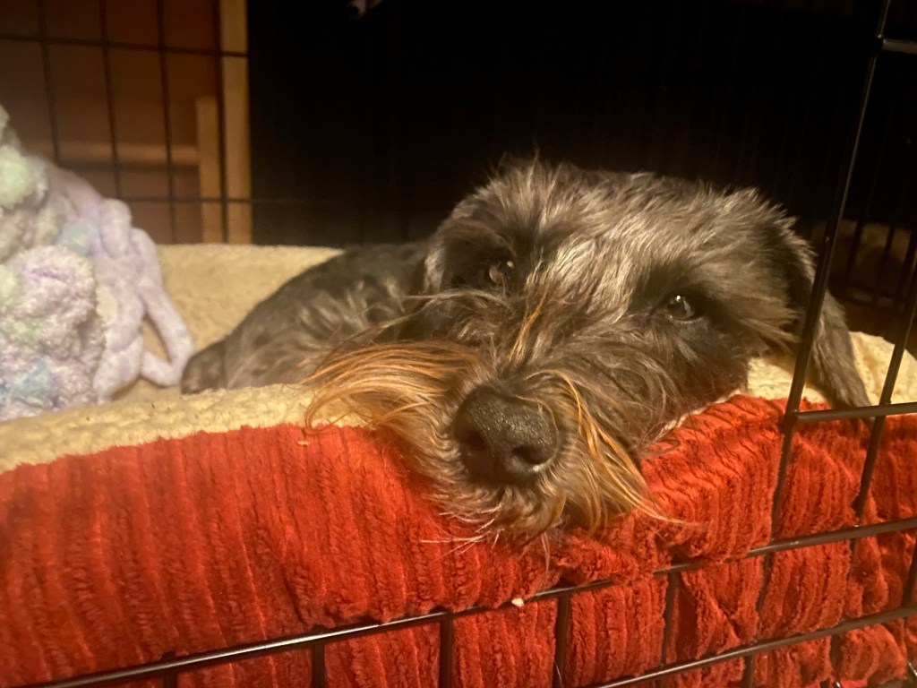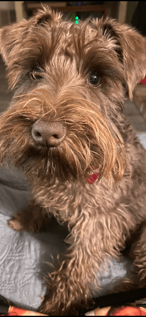 My sister and her family are in town, and they brought their two dogs, both Miniature Schnauzers. Bagheera, also know as Bags, is 11/12 years old. He is a sweet boy, but doesn’t particularly like being groomed.