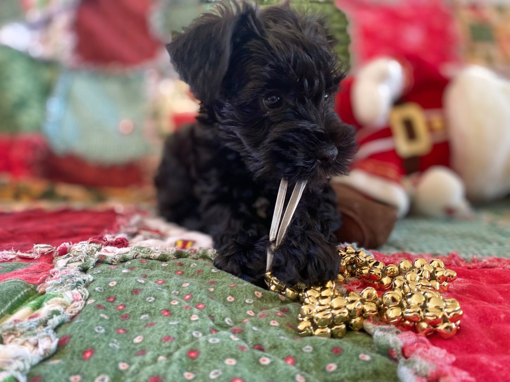Here is the after picture. He had some mats so I had to shave him down. So, he gets the Santa suit to stay warm.